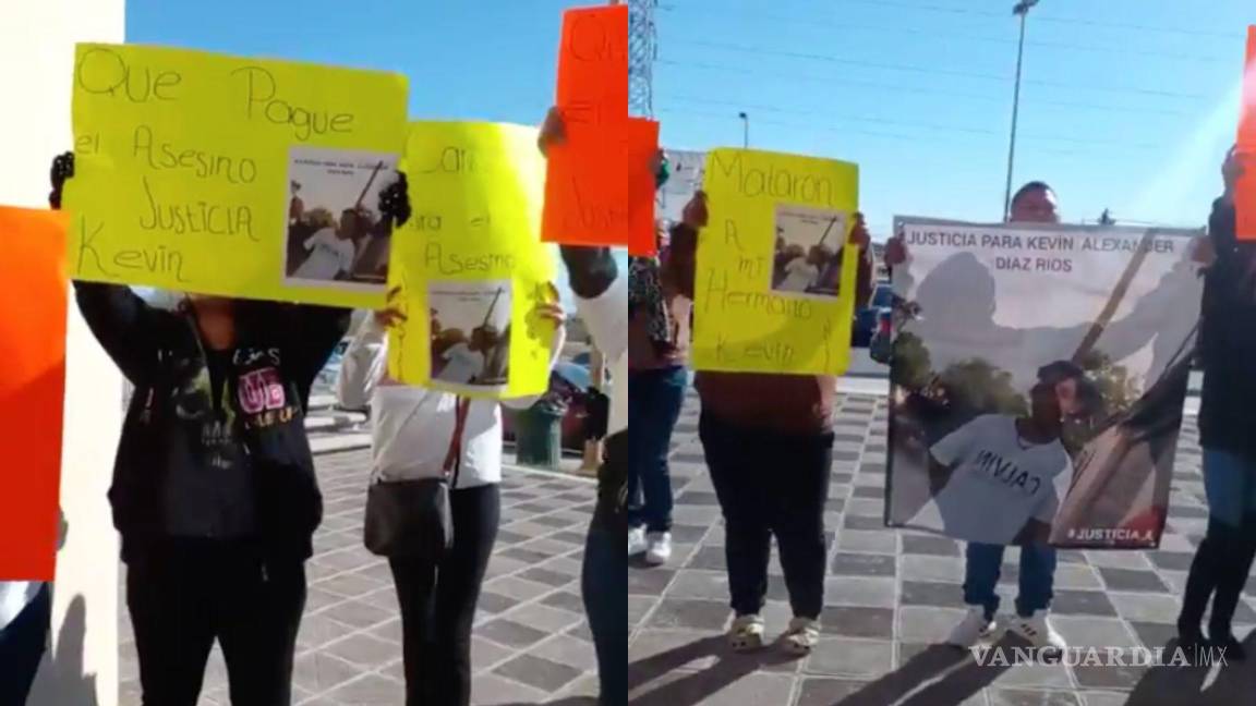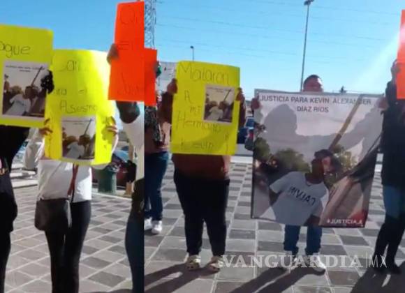 PIEDRAS NEGRAS, COAH.- Familiares de Kevin, un joven de 14 años asesinado a navajazos en la colonia Argentinas, en Piedras Negras, se manifestaron este lunes ante la Fiscalía General del Estado para exigir justicia por el asesinato de su ser querido.