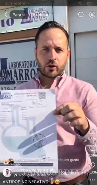 A diferencia de la directora municipal de Bienestar, Mayra Ruby Rangel —quien se realizó el antidoping junto con otros miembros del equipo del edil—, cuyo examen fue registrado a las 10:30 a. m., el del alcalde fue emitido antes de que siquiera pudiera entregar la muestra de orina. “Peor aún, se negó a dar muestra de sangre”, destacó.