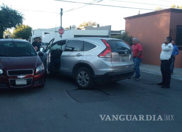Pierde el control hombre de la tercera edad y choca contra dos vehículos en Saltillo