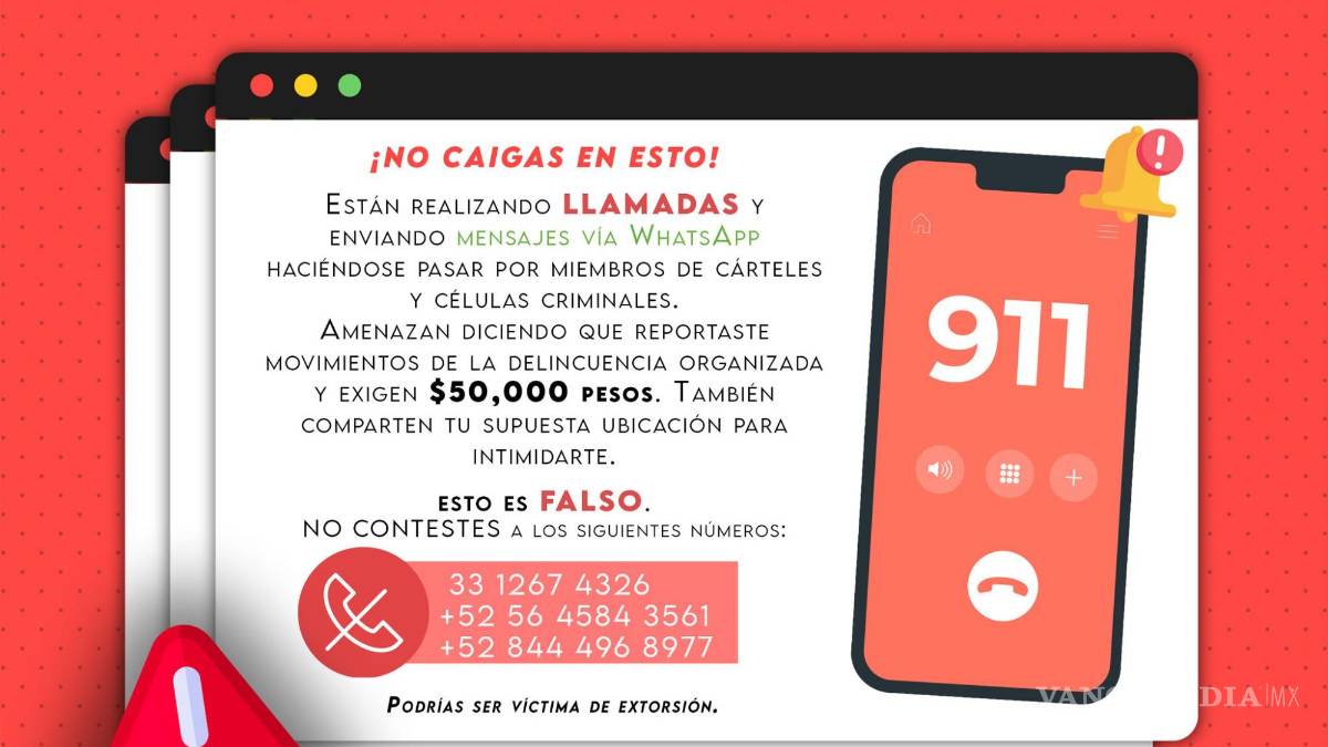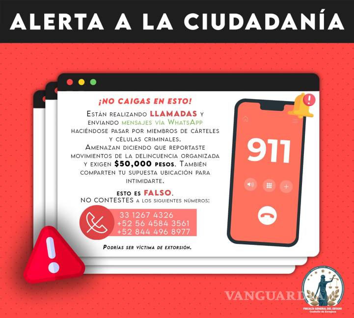 Según reporta la corporación a través de sus redes sociales, las amenazas han provenido recientemente de los números 33 1267 4326, 56 4584 3561 y 844 496 8977, desde los cuales los delincuentes exigen pagos bajo la premisa de evitar supuestos daños a familiares de las víctimas.