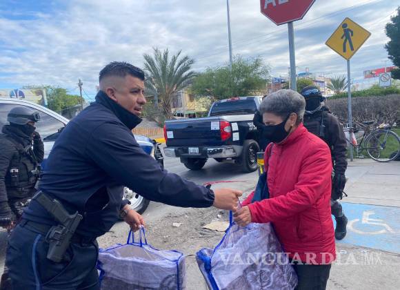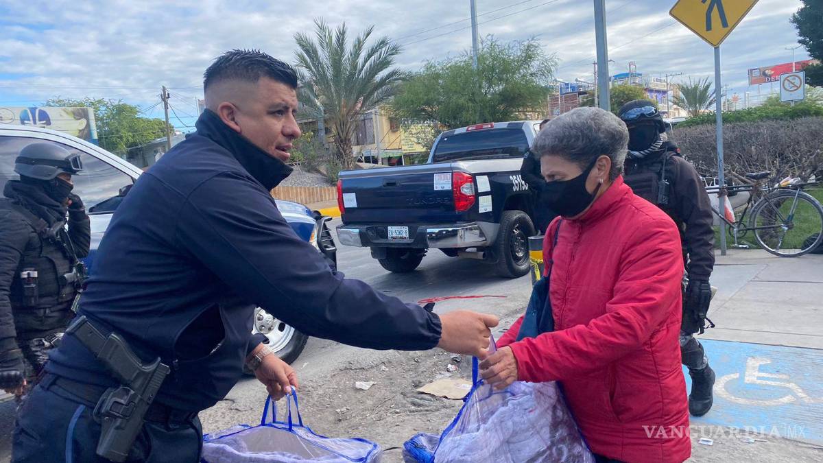 TORREÓN, COAH.- En apoyo a las personas que se encuentran en el exterior de las Clínicas 16 y 18 del IMSS, así como en el Hospital Universitario; la Policía de Torreón dio inicio al Operativo Abrigo, brindando alimentos calientes y cobertores a familiares de pacientes internos.
