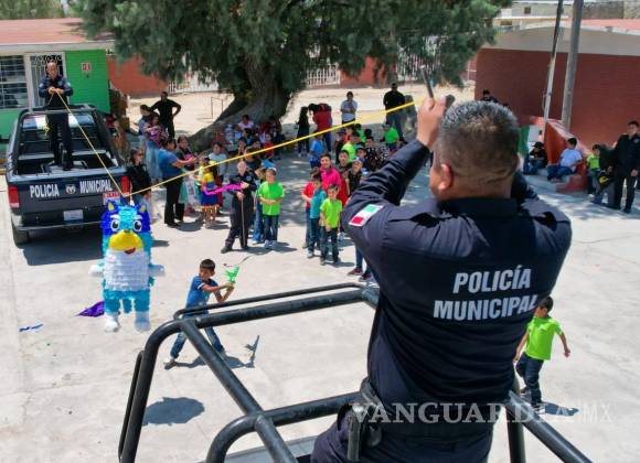 RAMOS ARIZPE, COAH.- En un gesto que combinó alegría, cercanía y compromiso social, elementos de la Policía Municipal de Ramos Arizpe organizaron un emotivo festejo del Día del Niño para más de 250 estudiantes del ejido Paredón, llevando momentos de felicidad a las niñas y niños del jardín de niños Venustiano Carranza, la primaria Emilio Carranza y la escuela de educación inicial.