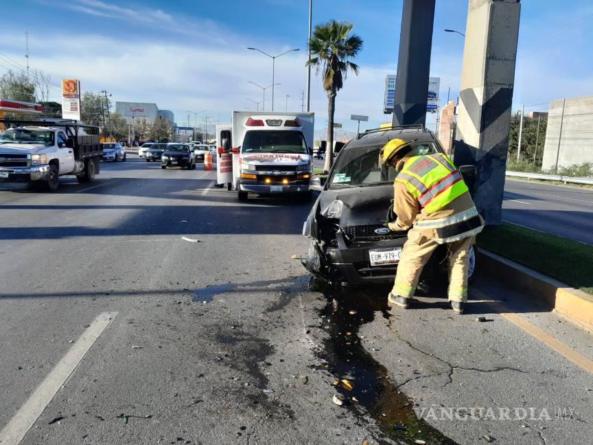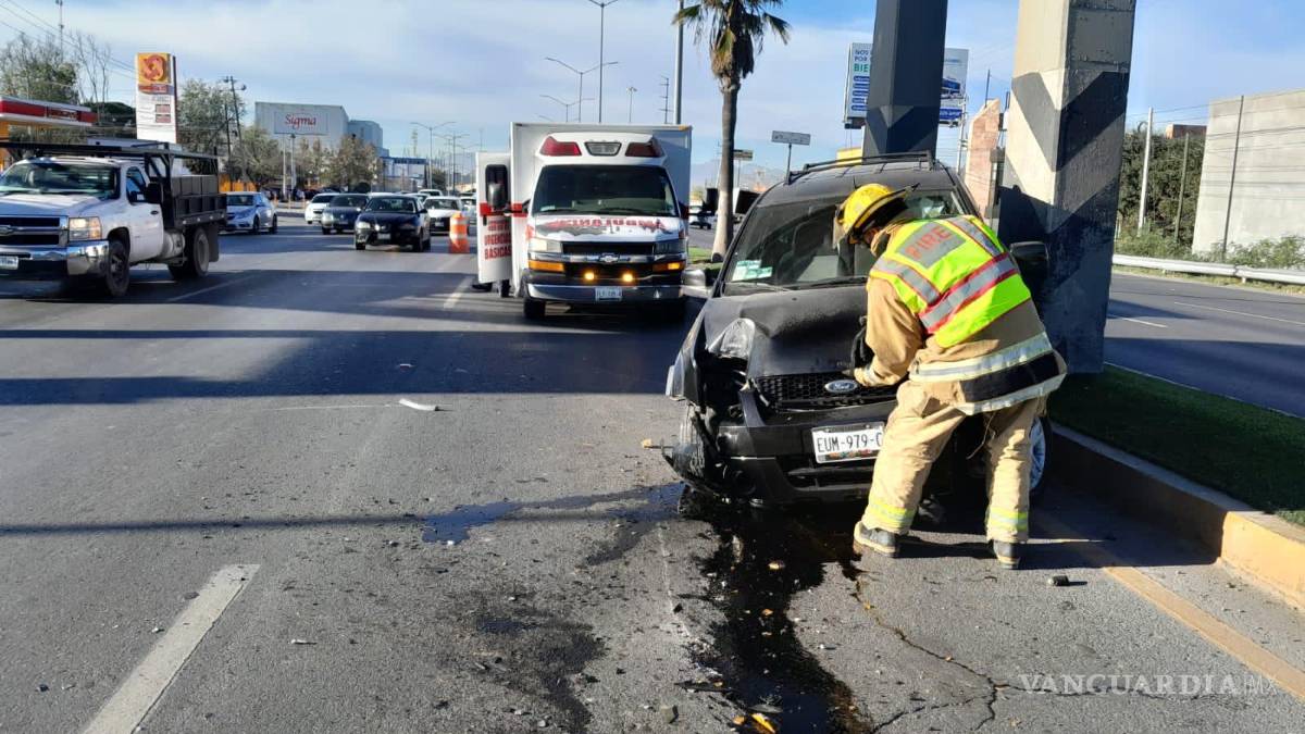 La conductora de una camioneta perdió el control de su vehículo mientras circulaba en dirección a Saltillo, lo que resultó en una colisión lateral con otro automóvil y posteriormente en la proyección contra una luminaria, derribándola.