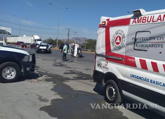 Por acelerado, vuelca repartidor de agua en la carretera Saltillo-Monterrey