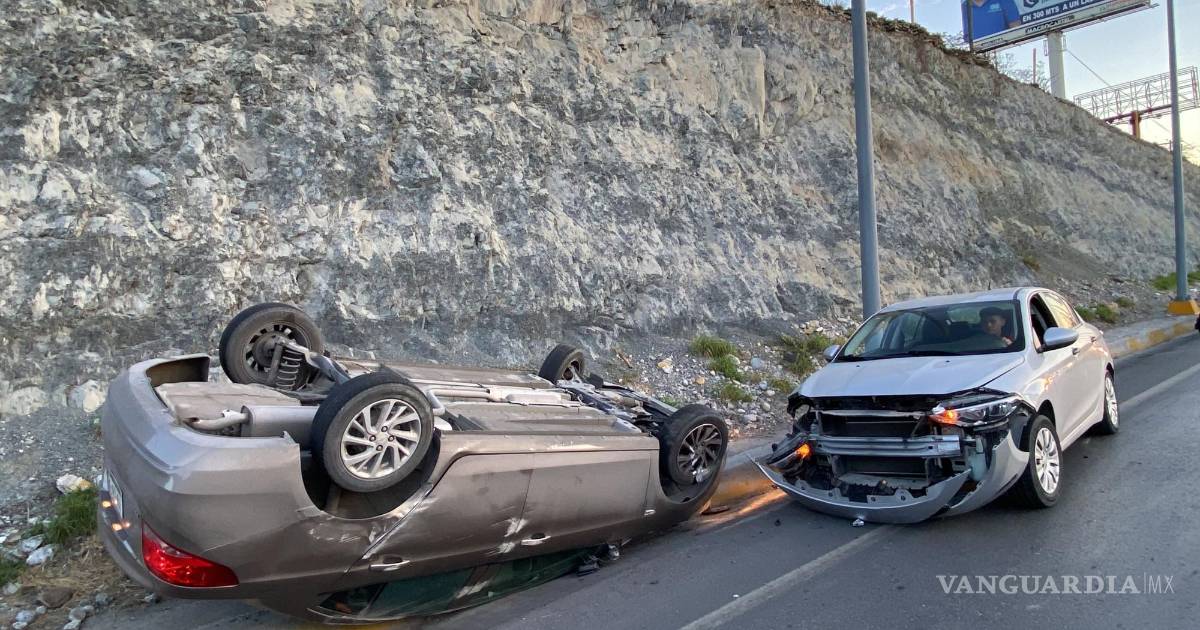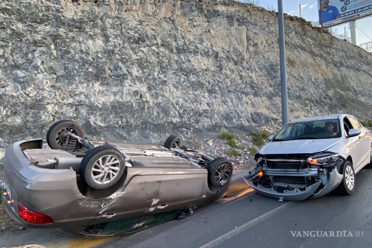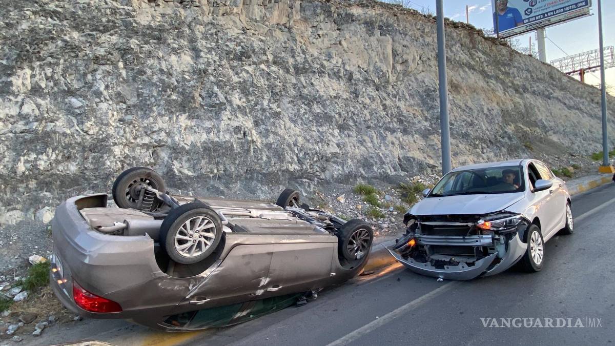 Por conducir con exceso de velocidad, choca y sufre volcadura en carretera Monterrey-Saltillo