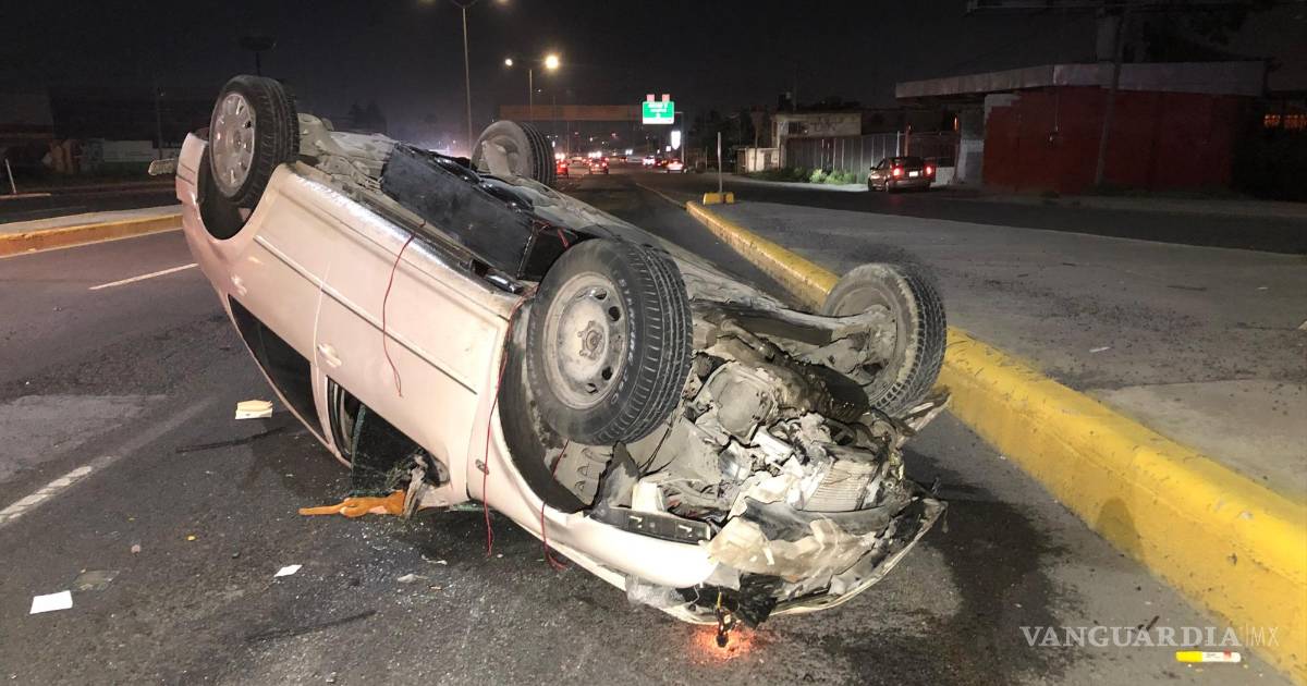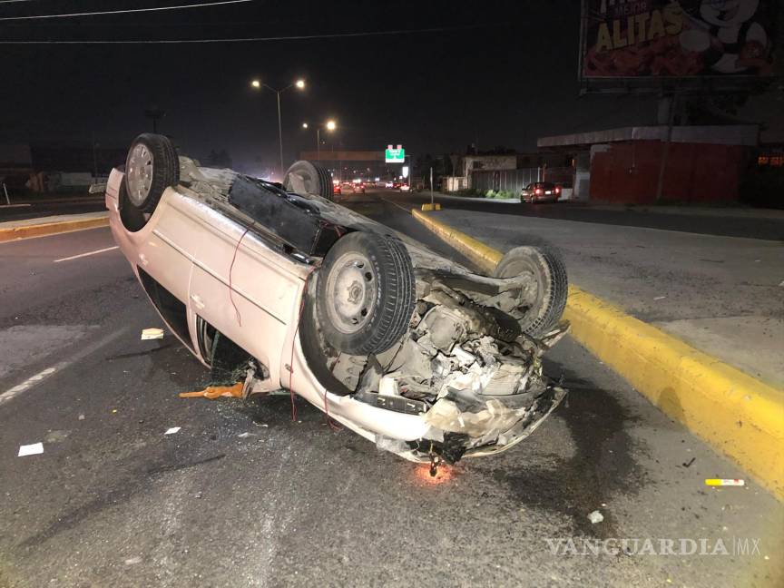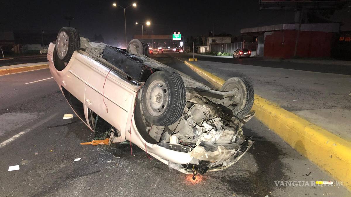 Cuantiosos daños materiales y un vehículo volcado fue el resultado de un percance vehicular en donde el responsable, al presuntamente esquivar una camioneta, impactó un automóvil de la marca Volkswagen, el cual salió proyectado contra una barrera de contención para finalmente terminar volcado, al oriente de Saltillo.