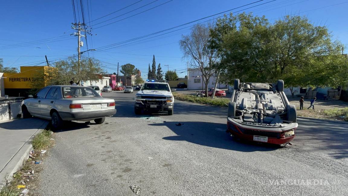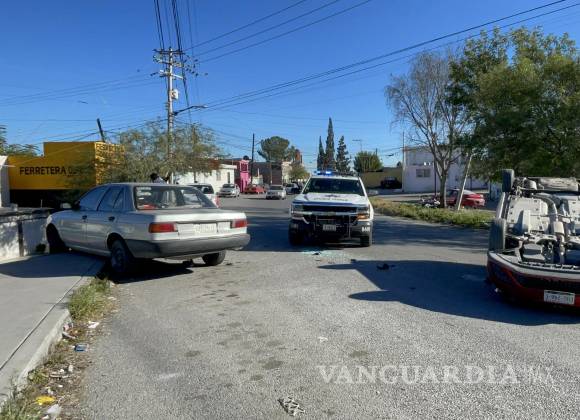 Por exceso de velocidad, conductor choca contra auto estacionado y vuelca en Saltillo