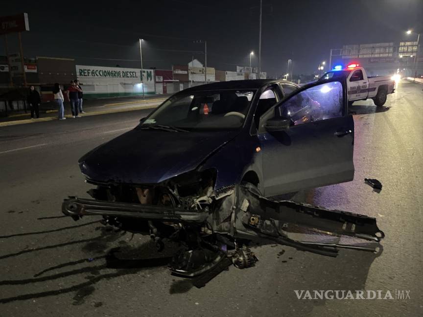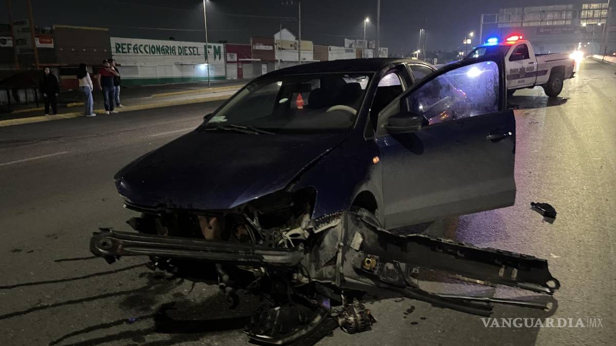 En pérdida total terminó un auto Volkswagen Vento luego de que su conductor perdió el control y se impactó contra los bloques de concreto que dividen la circulación del bulevar Fundadores, al oriente de Saltillo, obstruyendo la vialidad en ambos sentidos por al menos una hora.