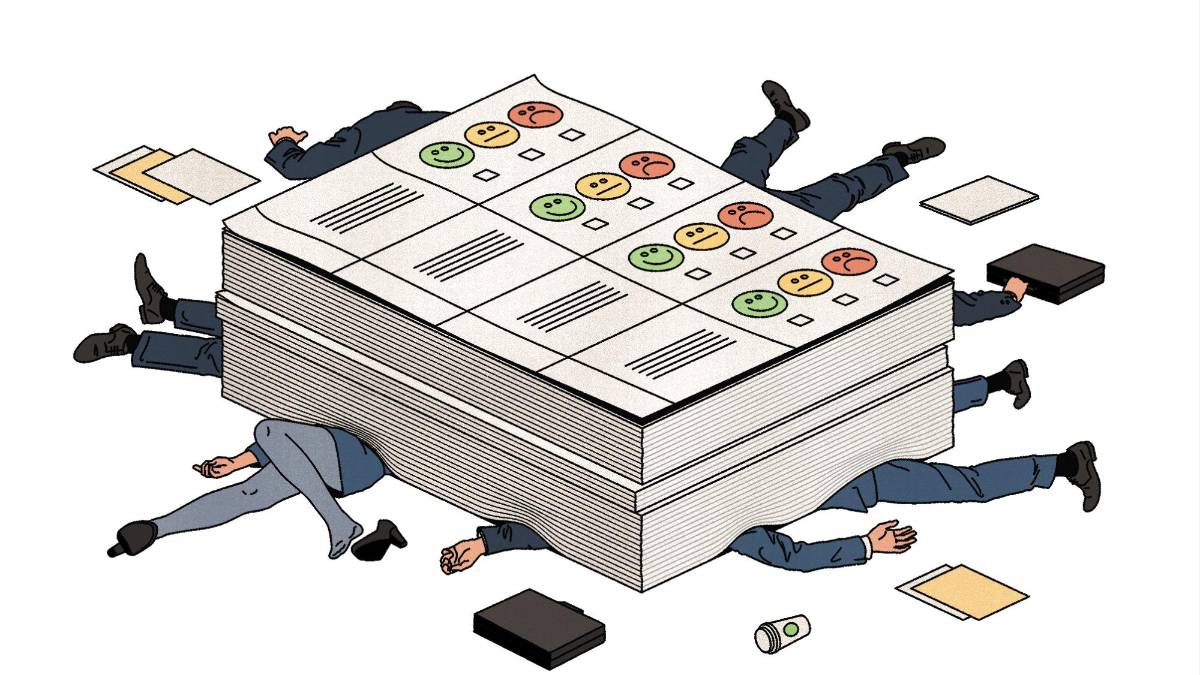 En medio de despidos y trabajos en constante cambio, el estrés de los empleados está en su nivel más elevado, incluso ahora que las encuestas de compromiso laboral son cada vez más frecuentes y se realizan con alta tecnología. ¿Qué les está faltando a las empresas? (Álvaro Bernis/The New York Times)