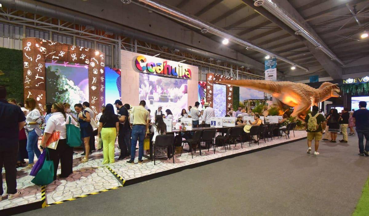 El stand de Coahuila fue de los más visitados en el Tianguis, donde decenas de asistentes se tomaron fotografías y videos con los dinosaurios animatronics; también se contó con un set de fotografías, pantallas gigantes para transmitir videos, área de vinos coahuilenses y sotol, y una zona de trabajo para las citas de negocios.