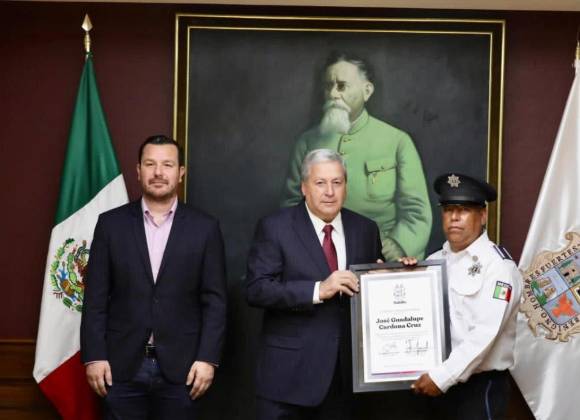 Los oficiales recibieron un reconocimiento de manos del alcalde José María Fraustro, así como un estímulo económico por su destacada labor.