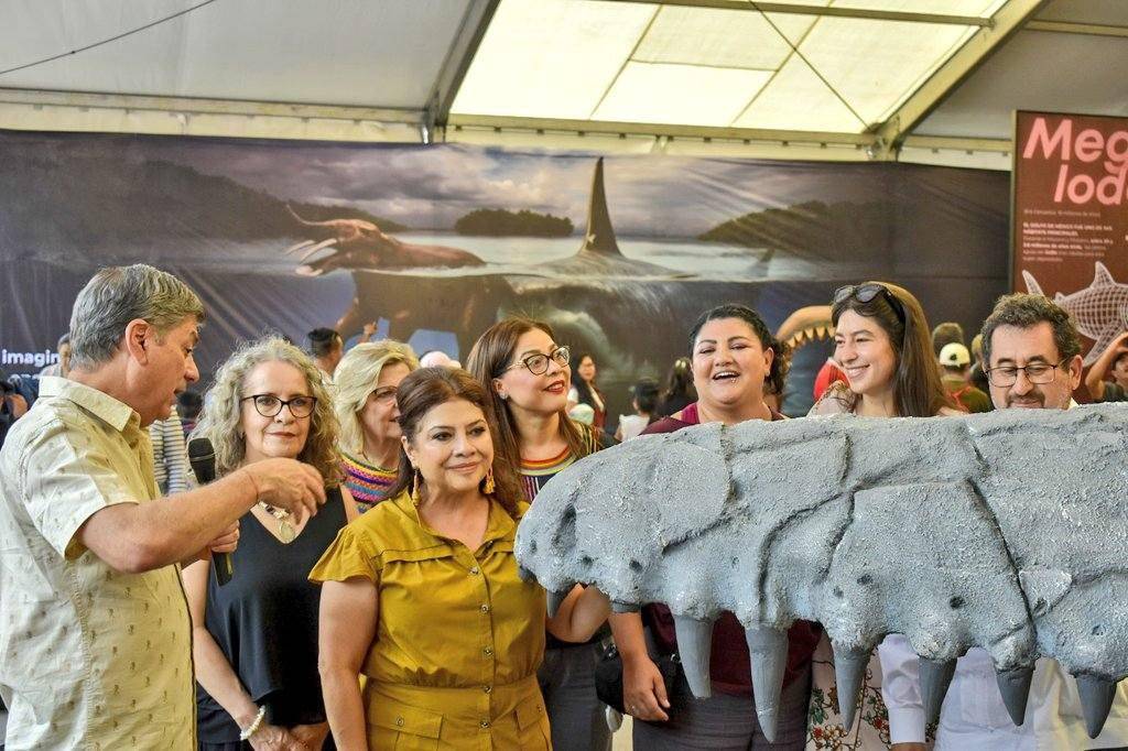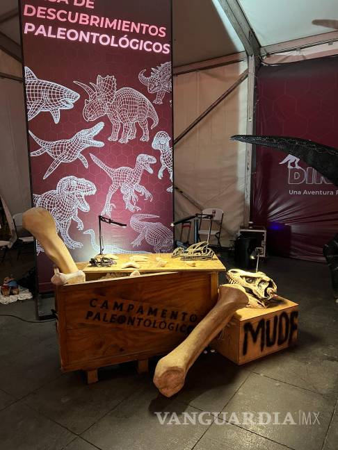 La muestra, detalló el Mude, reúne piezas encontradas en México y Norteamérica, incluidas réplicas científicas de esqueletos de dinosaurios y otros reptiles prehistóricos, como el Tyrannosaurus rex, el Coahuilaceratops magnacuerna, el Edmontonia, entre otros, así como especies marinas como el Megalodón y el Monstruo de Aramberri.