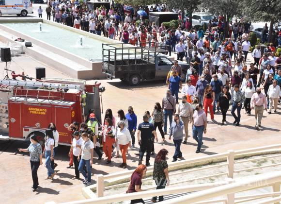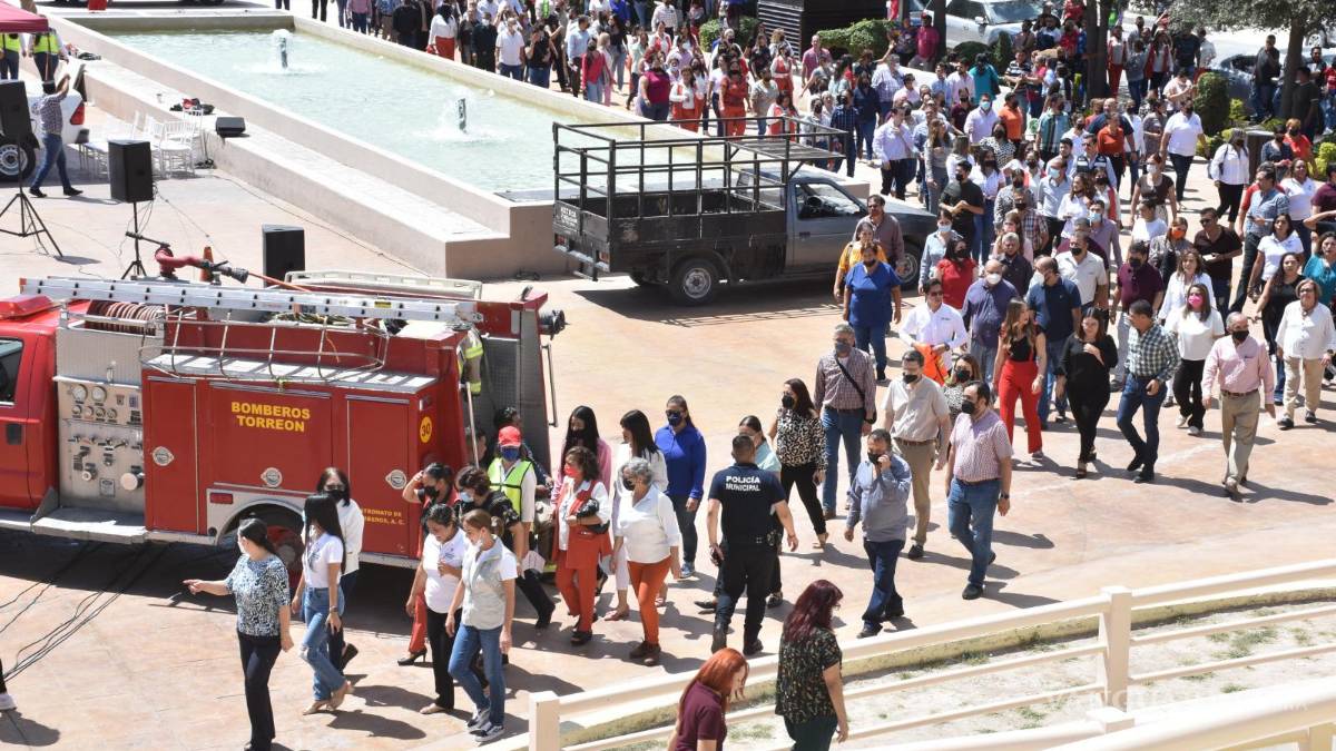 Jorge Luis Juárez Llanas, director de Protección Civil y Bomberos de Torreón, dio a conocer que a las 11:00 horas sonará la alarma que da aviso a la emergencia simulada, momento en el que será evacuado el personal y la ciudadanía que se encuentre en el edificio.