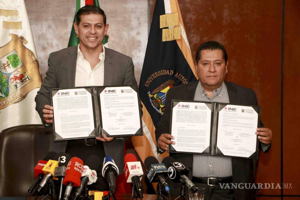 El acuerdo fue rubricado por el rector de la UAdeC, Octavio Pimentel Martínez, y el vocal ejecutivo del INE, José Luis Vázquez López, quien expresó su agradecimiento por la disposición y el interés de la Universidad en colaborar con el Instituto para fomentar una cultura democrática entre los jóvenes.