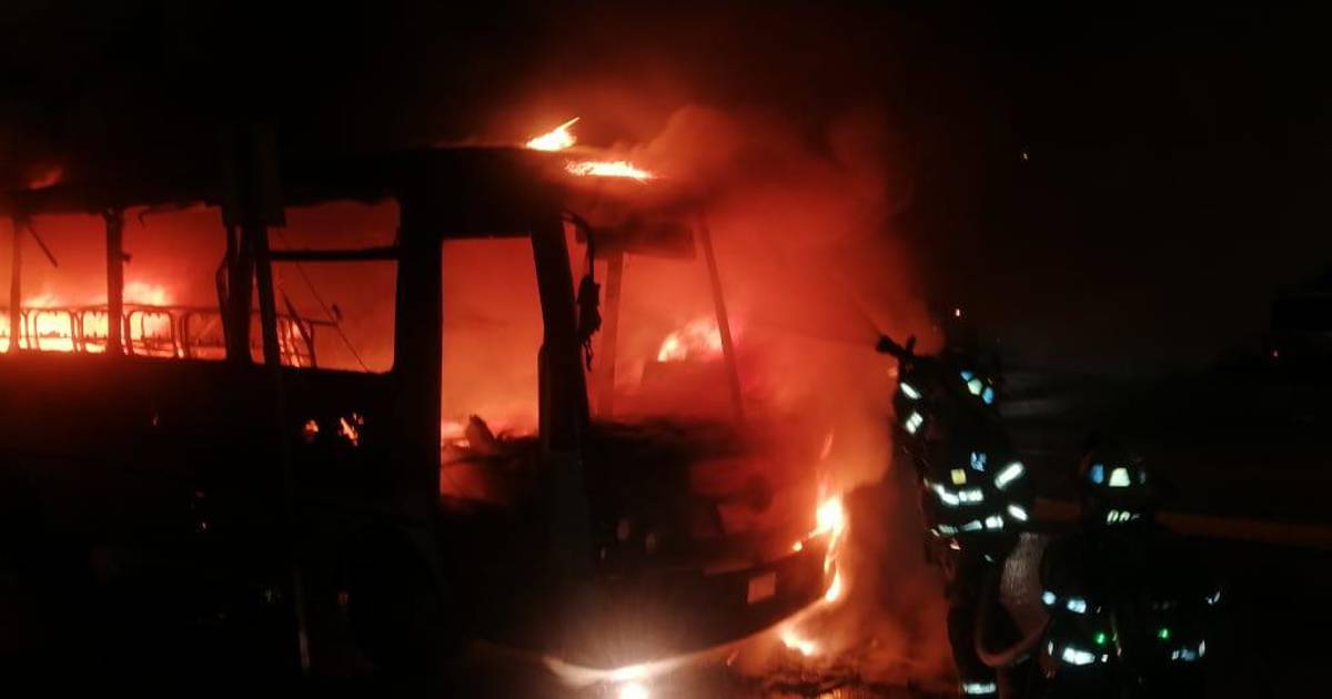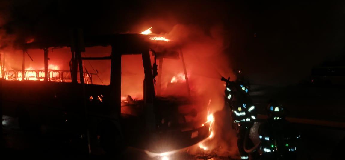 Un autobús de transporte de personal se incendió y quedó reducido a chatarra alrededor de las 5:00 horas de ayer frente a la tienda comercial Merco.