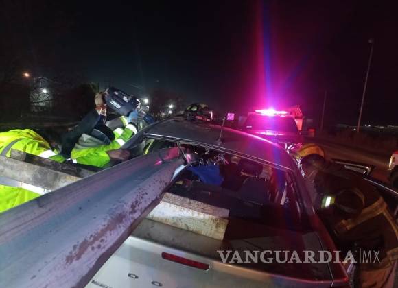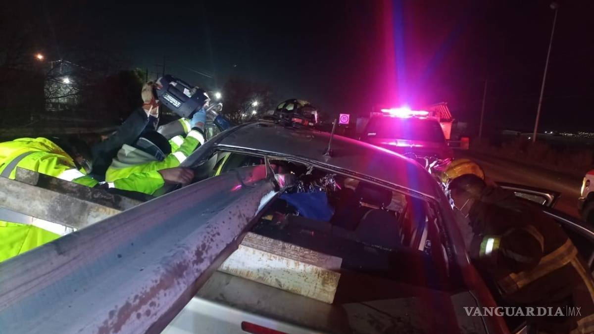 SALTILLO, COAH.-Un hombre fue liberado por el personal de Protección Civil de Arteaga y trasladado al Hospital General de Saltillo en estado grave por paramédicos de bomberos de Ramos Arizpe, al quedar prensado en el interior de su auto al circular por el libramiento Óscar Flores Tapia y chocar contra la barrera metálica de contención.