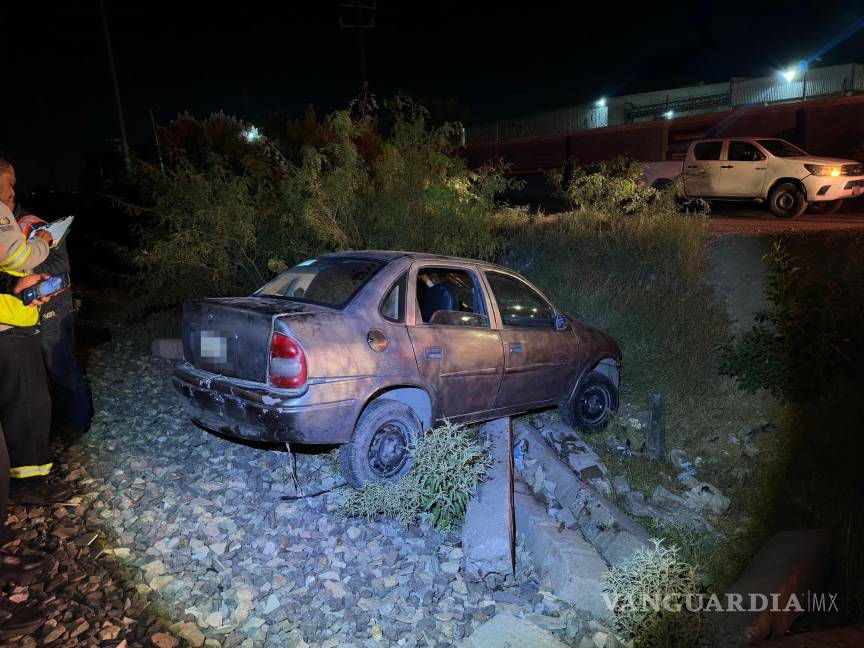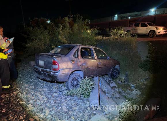 El conductor de un auto compacto sufrió un accidente cuando intentaba ganar el paso al tren en las vías ferroviarias de la carretera estatal a Los Pinos, frente a la colonia Las Esperanzas en Ramos Arizpe, Coahuila.