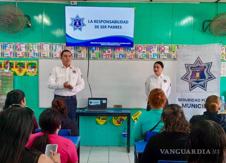 Como parte de su estrategia semanal de prevención social del delito, la Dirección de Seguridad Pública Municipal, a través de la Unidad de Proximidad Social, impartió pláticas dirigidas a madres y padres de familia en planteles de educación primaria de Ramos Arizpe, bajo el tema “La Responsabilidad de Ser Padres”.