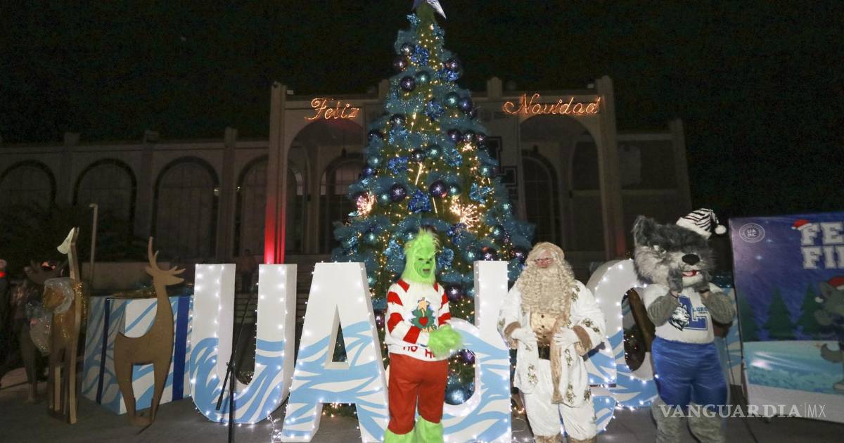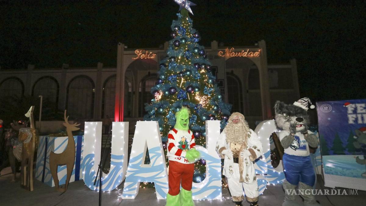 Para marcar el inicio oficial de la temporada navideña, la Universidad Autónoma de Coahuila realizó el encendido del pino colocado en la explanada del edificio de Rectoría, en un evento encabezado por el rector Octavio Pimentel Martínez.
