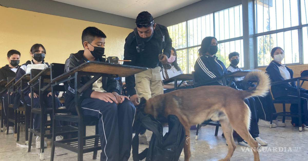 Durante el horario de clases matutino en la escuela secundaria Federico Berrueto Ramón de Saltillo, la Policía Estatal junto con unidades caninas del área de seguridad K9 realizaron un operativo mochila para detectar sustancias o artículos prohibidos entre los artículos de los estudiantes.