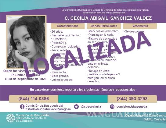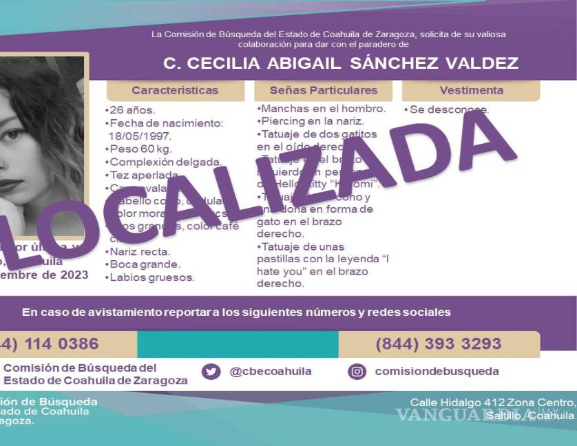 Tras varias horas en que fue buscada por las autoridades, la Fiscalía de Coahuila confirmó el reporte del hallazgo de la joven Abigaíl “N”, quien ya se encuentra fuera de peligro.