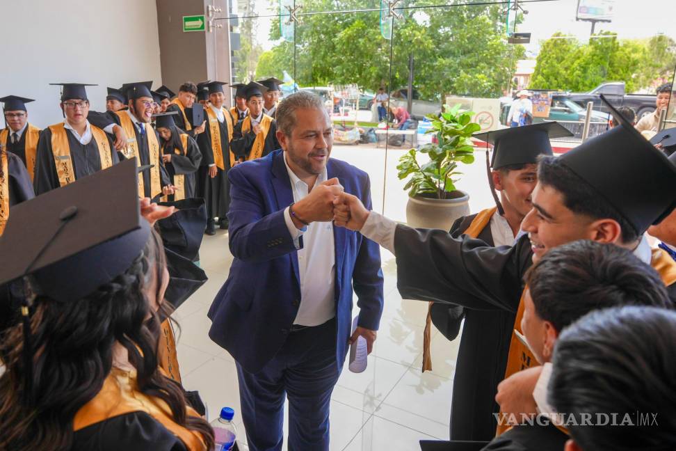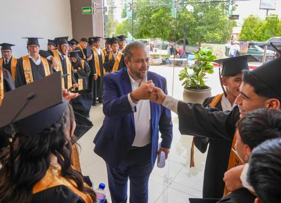 Acompañado por la directora general del CECyTEC en el Estado, Lucía Azucena Ramos Ramos, el Edil destacó que esta generación representa un presente activo y un futuro prometedor para Ramos Arizpe. “Verlos aquí, con metas cumplidas y otras por venir, confirma que cuando trabajamos juntos, sí podemos. Estoy convencido de que van a hacer grandes cosas”, expresó ante los graduados.