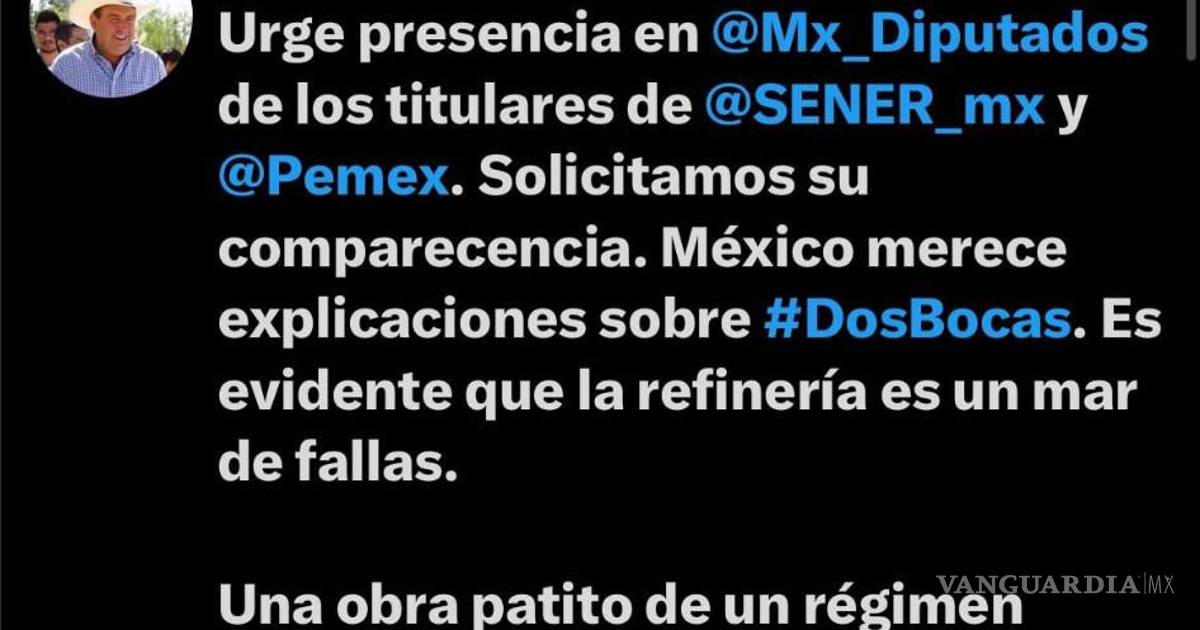 ‘Refinería Dos Bocas, obra patito de un régimen patito’, dice Rubén Moreira, diputado por Coahuila