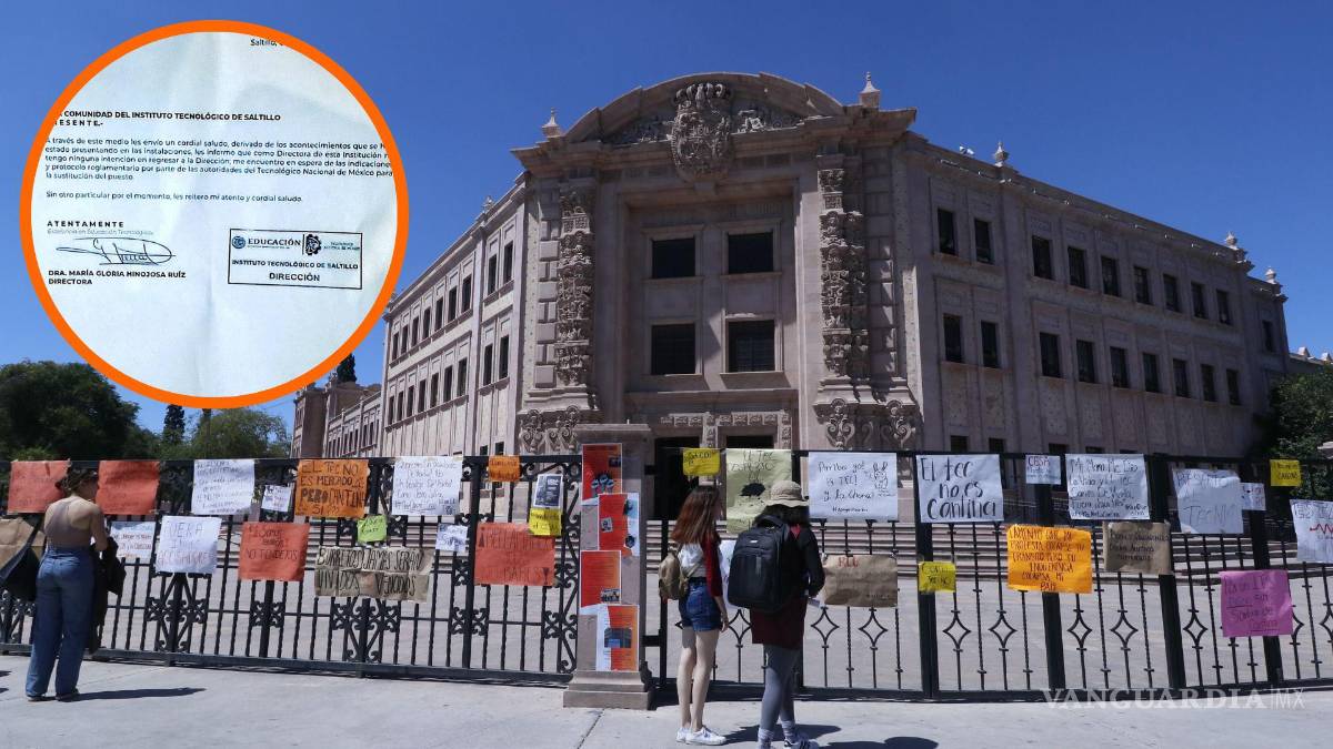 Más de dos días después de la toma de las instalaciones del Instituto Tecnológico de Saltillo, la directora Gloria Hinojosa no ha aparecido públicamente. Esta mañana causó revuelo la publicación de su supuesta carta de renuncia en redes sociales y horas después se conoció el documento con su dimisión al cargo.