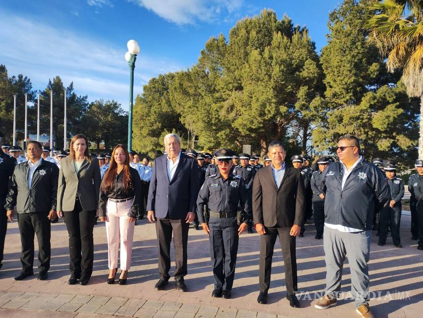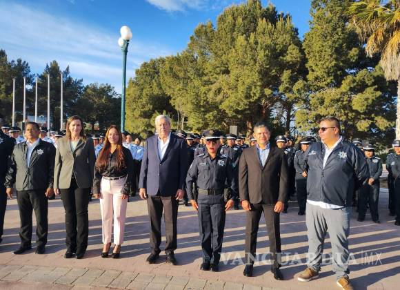 En la ceremonia, realizada en la explanada del Museo del Desierto, el alcalde entregó reconocimientos a los oficiales Gamaliel Garza Cisneros y a Citlalli Rodríguez Díaz, quienes con valentía y dedicación participaron en el rescate de personas durante un incendio registrado en el sector oriente de la ciudad, por su invaluable acto de heroísmo que enaltece la labor de la corporación municipal.