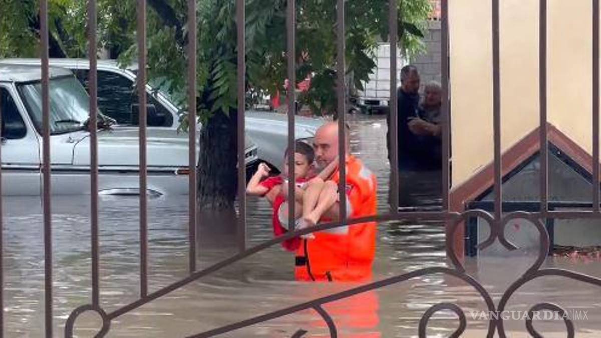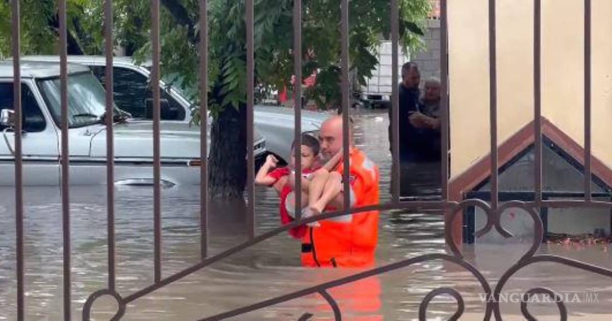 En un video se muestra el momento en que un rescatista de Protección Civil saca en brazos a un menor de una vivienda inundada en Múzquiz, Coahuila. La grabación se hizo viral en redes sociales