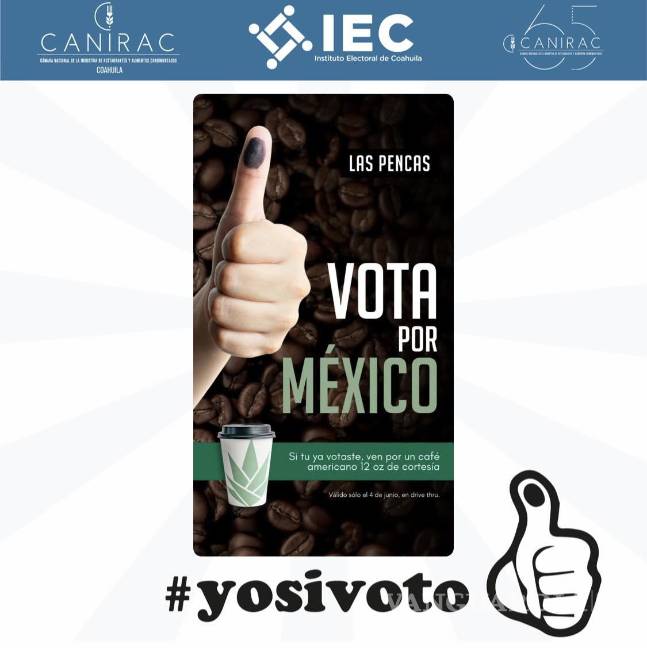 Esto como parte de la campaña #yosivoto impulsada por la Canirac y el Instituto Electoral de Coahuila. Aquí te decimos algunos de los establecimientos que ya han anunciado las promociones disponibles; la actividad solamente será válida durante la jornada del 4 de junio.