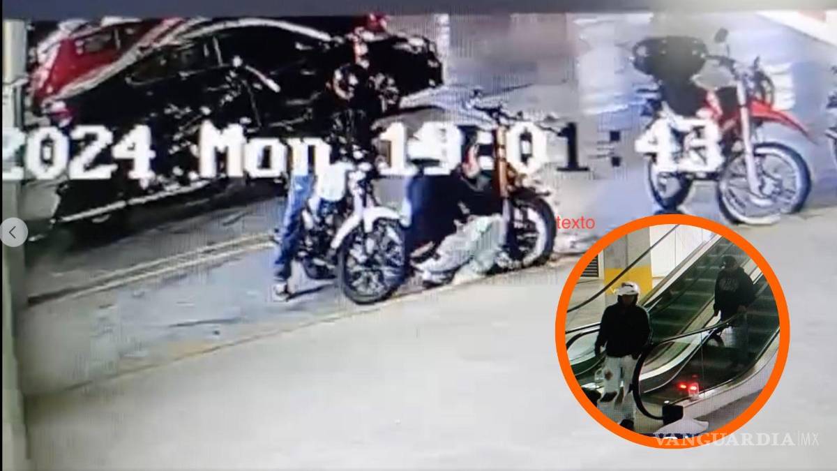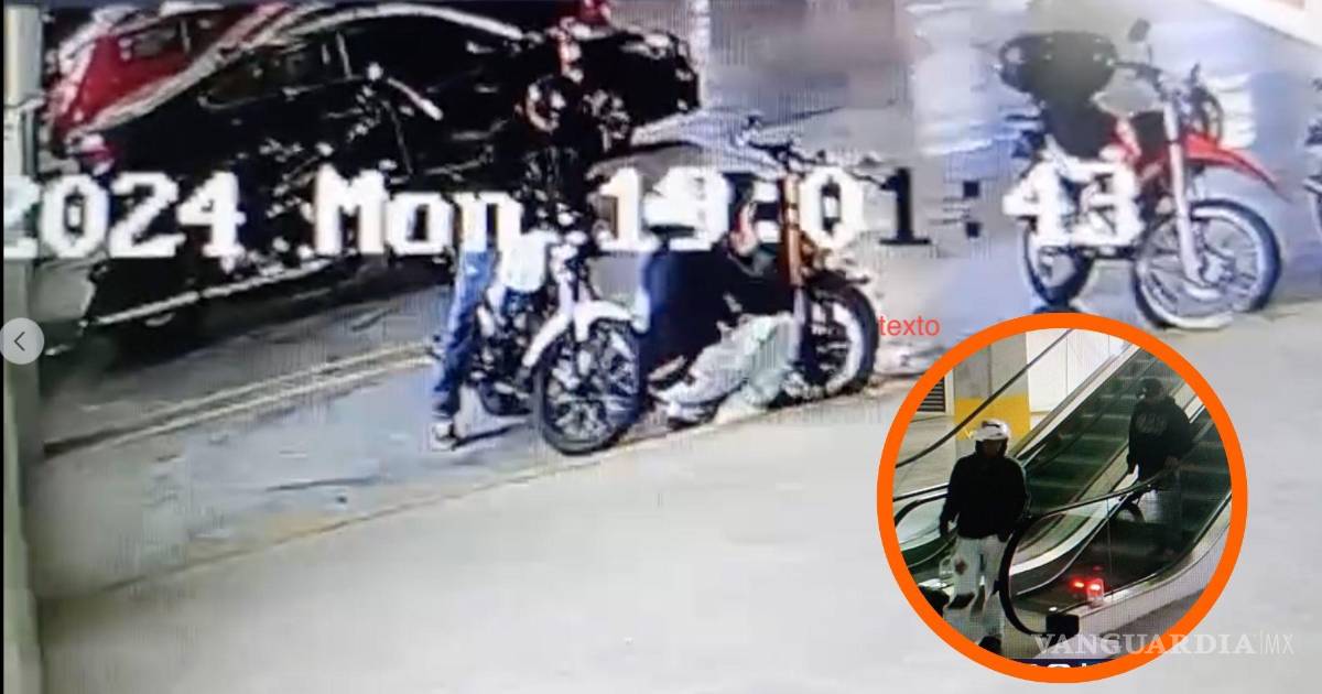 A través de grupos de Facebook locales, la usuaria Ventura Estela ha compartido imágenes y videos de seguridad que muestran el momento en que dos hombres sustrajeron una motocicleta de un centro comercial ubicado en el bulevar Nazario Ortiz, al norte de Saltillo.