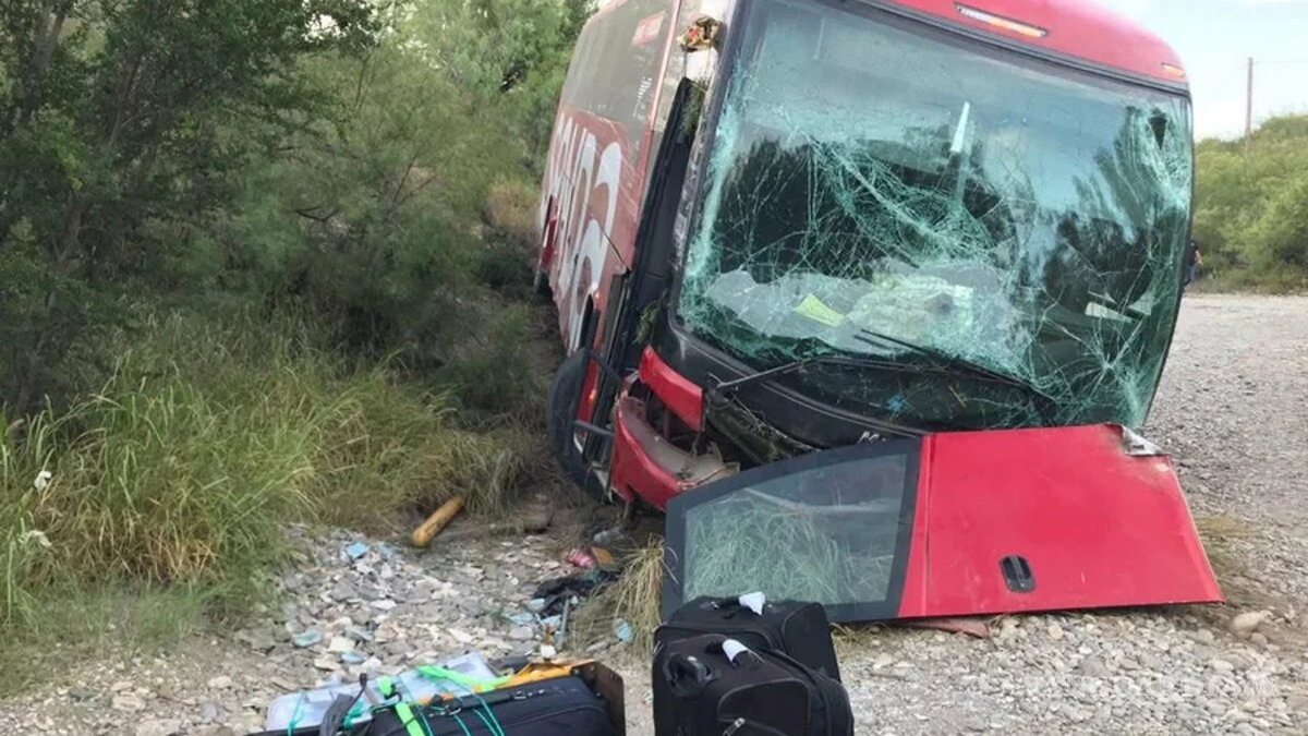 Cae autobús a barranco en Sabinas; hay 11 heridos y conductor detenido