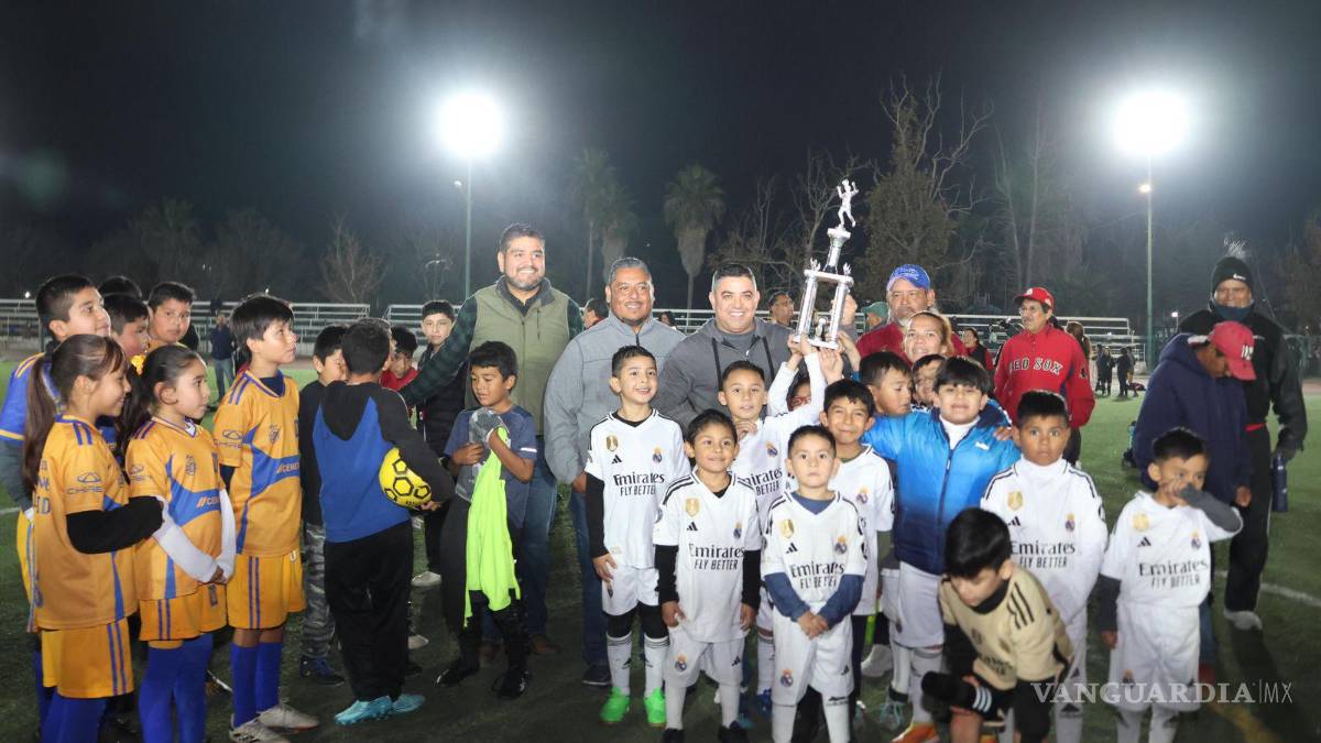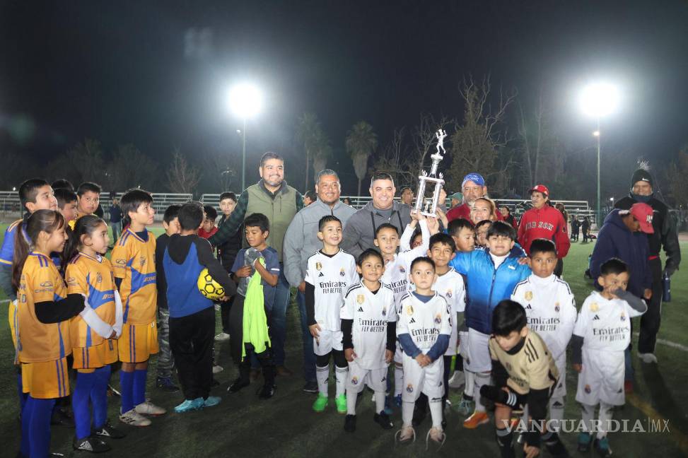 SABINAS, COAH.- Con una inversión cercana a los 400 mil pesos, el alcalde de Sabinas, José Feliciano Díaz Iribarren, inauguró el alumbrado de las canchas de futbol soccer con pasto sintético de la unidad deportiva Conrado Marines Ortiz.