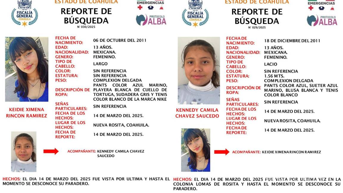 TE PUEDE INTERESAR: Desaparecen dos amigas de 13 años en Nueva Rosita; activan protocolos de búsqueda