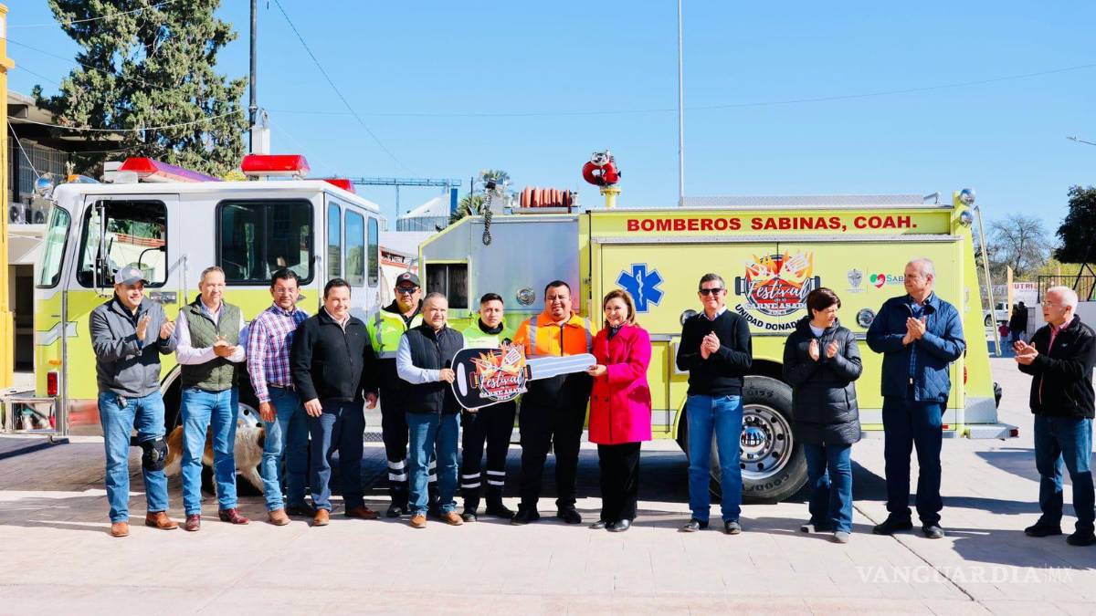 Reciben bomberos de Sabinas, motobomba y equipamiento por parte de alcaldesa y el Festival de Carne