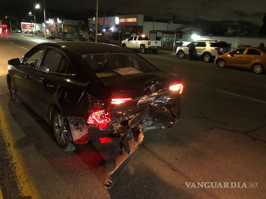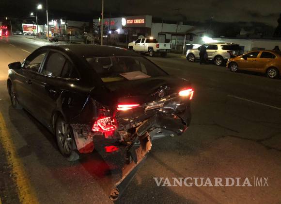 El conductor de un vehículo Chevrolet chocó por alcance contra un automóvil de la marca MG que salía de un banco. El incidente tuvo lugar alrededor de la medianoche en el Periférico Luis Echeverría Álvarez, al sur de Saltillo, cuando el conductor de un vehículo modelo Sonic circulaba de oriente a poniente a presunta velocidad excesiva.