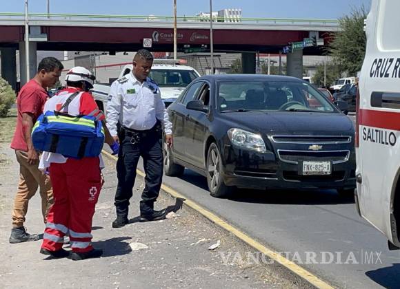 Sale vivo de milagro: motociclista es impactado por auto y se estrella contra vehículo al norte de Saltillo