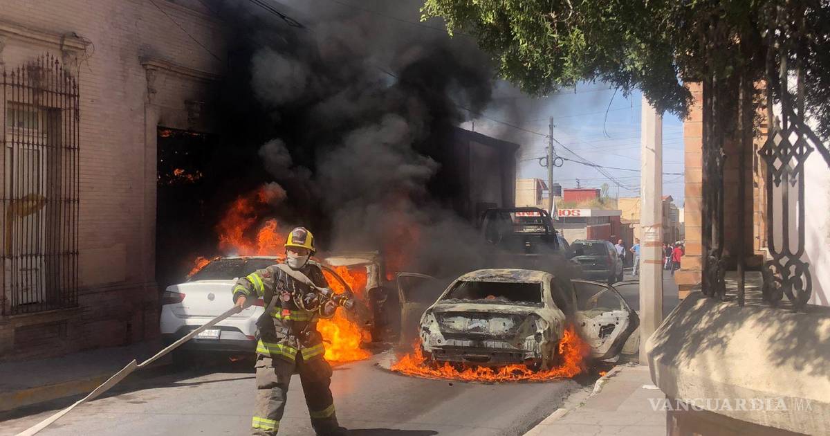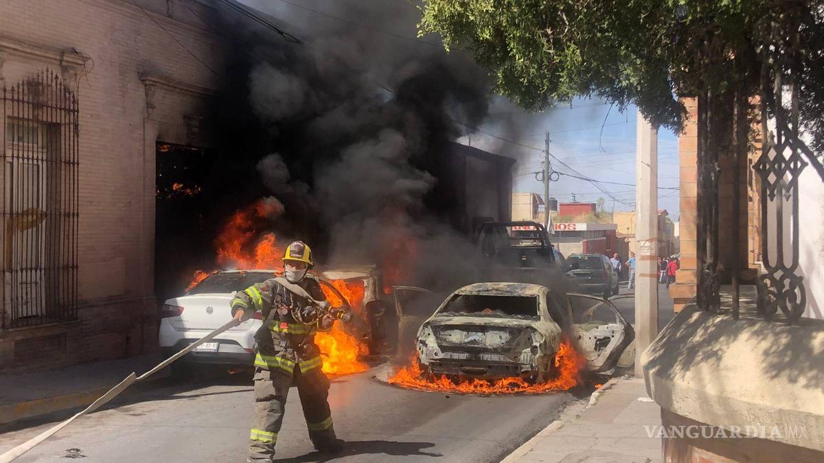 Saltillo: alarma incendio de tres vehículos a vecinos de la Zona Centro