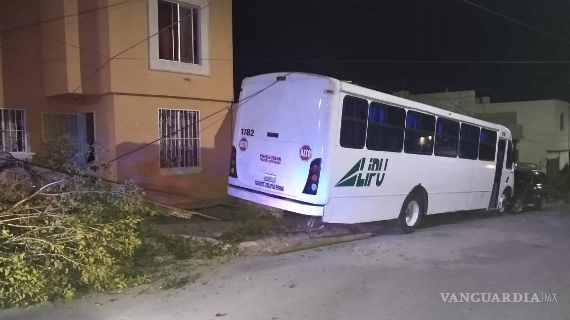 Un camión de personal sin frenos dejó sin luz y sin internet a los habitantes de la colonia Lomas del Refugio, al sur de Saltillo, luego de llevarse de encuentro tres postes, un árbol y dos vehículos estacionados.
