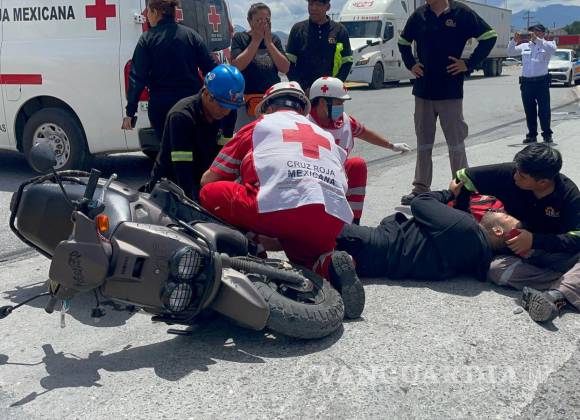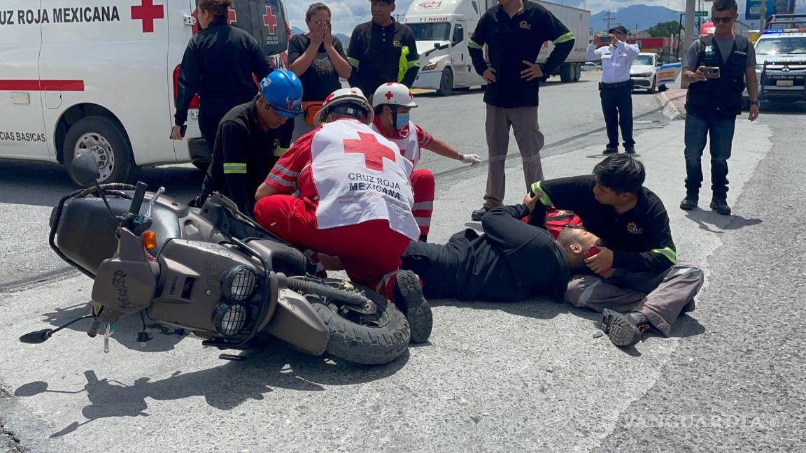 Saltillo: camión de valores arrolla a joven motociclista y lo deja fracturado