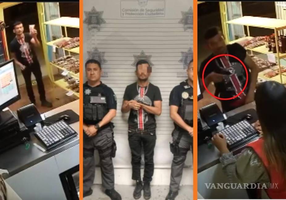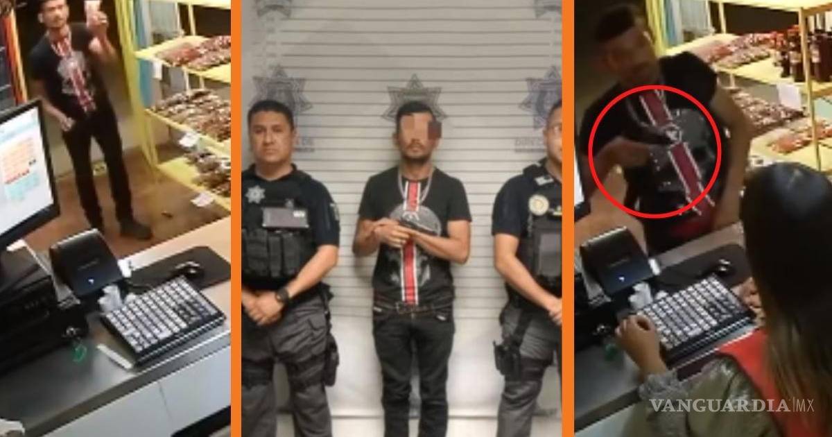 Saltillo: captan en video asalto a mano armada en sucursal de Pepewates; ladrón es detenido minutos después