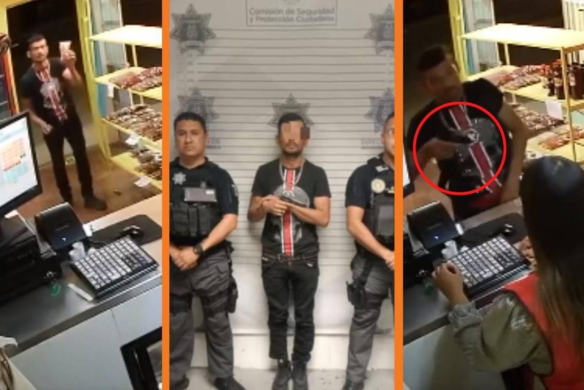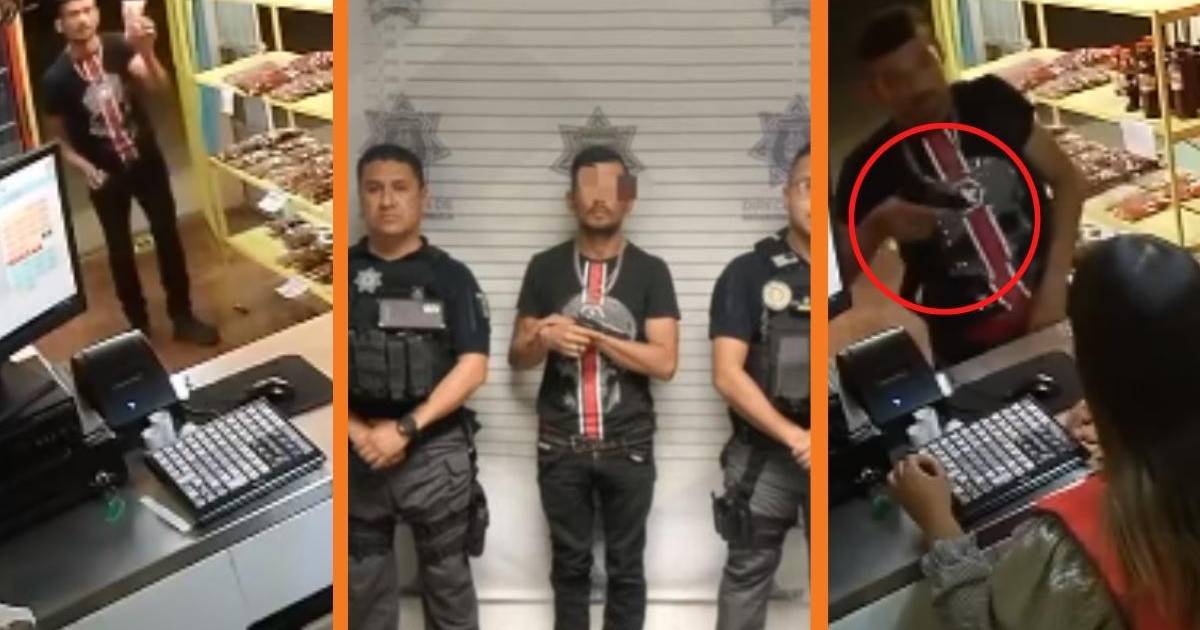 El atraco fue grabado por la cámara de seguridad del establecimiento, lo que facilitó la identificación del ladrón. Policías municipales lograron detenerlo al poco tiempo con el botín y el arma de fuego