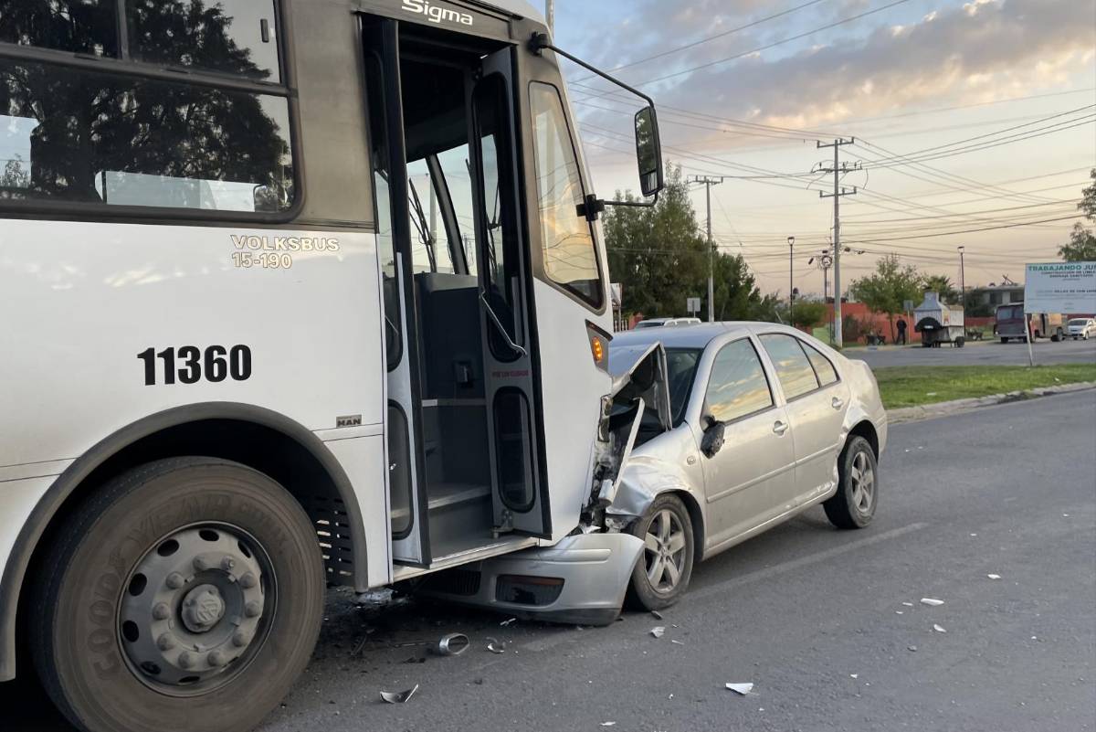 Una automovilista que viajaba con sus tres hijos, terminó debajo de un camión luego de que su automóvil fuera golpeado y proyectado a los carriles de circulación contrarios a los que viajaba sobre prolongación Francisco de Urdiñola.