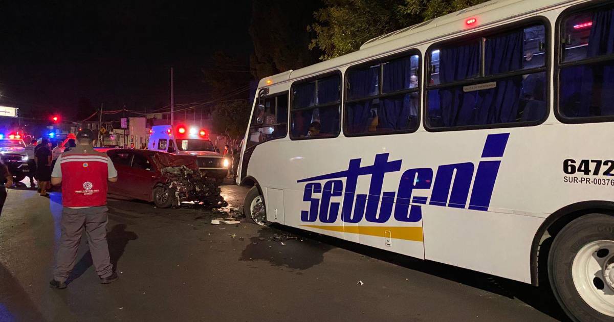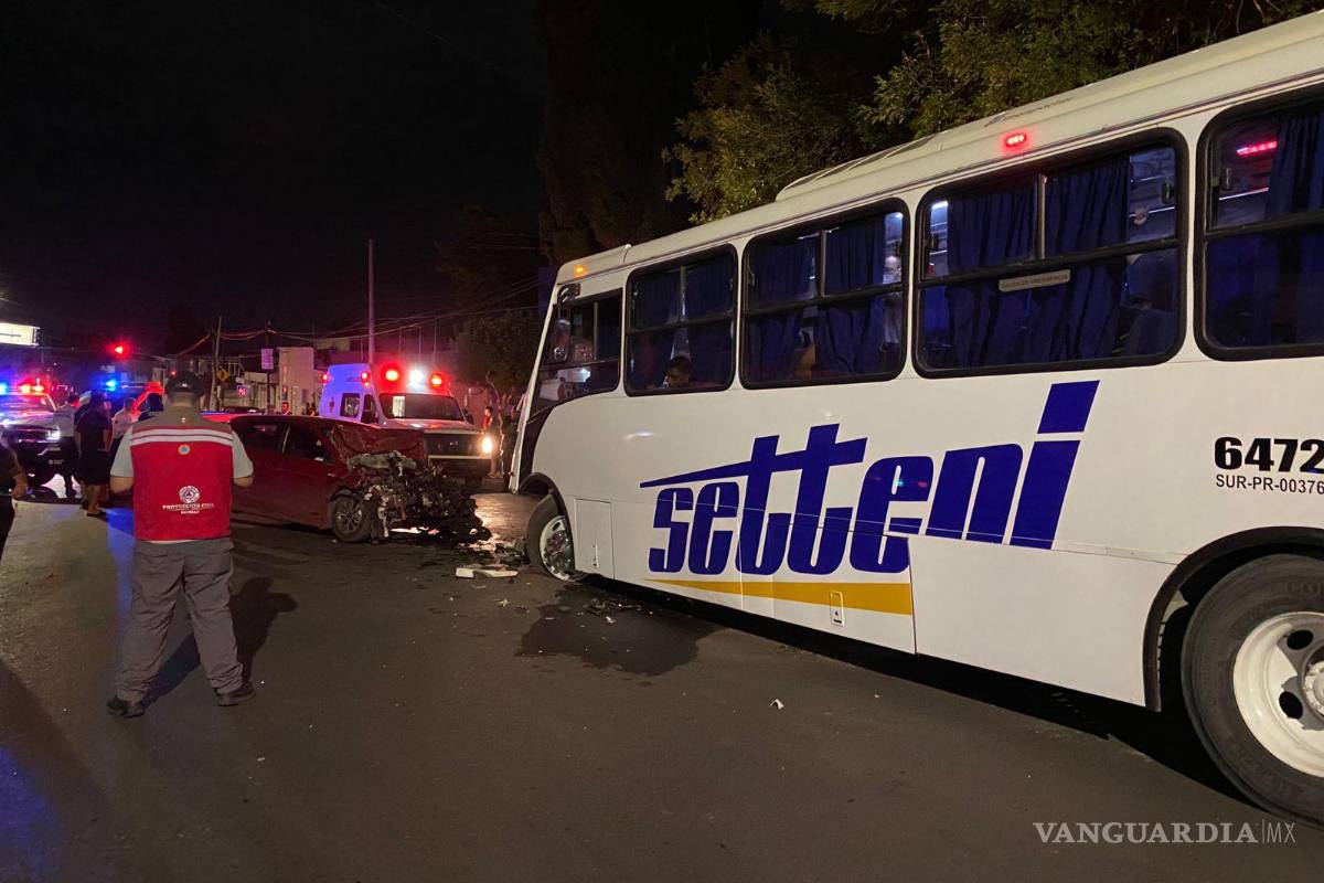 Fue alrededor de las 11:30 de la noche de este lunes que se presentó el accidente en la calle de Urdiñola a la altura de la colonia La Madrid, cuando Erick Alberto al circular de sur a norte se distrajo al volante presuntamente por revisar su celular lo que lo llevó a invadir el carril contrario, por donde circulaba un camión de transporte de personal con 16 pasajeros.
