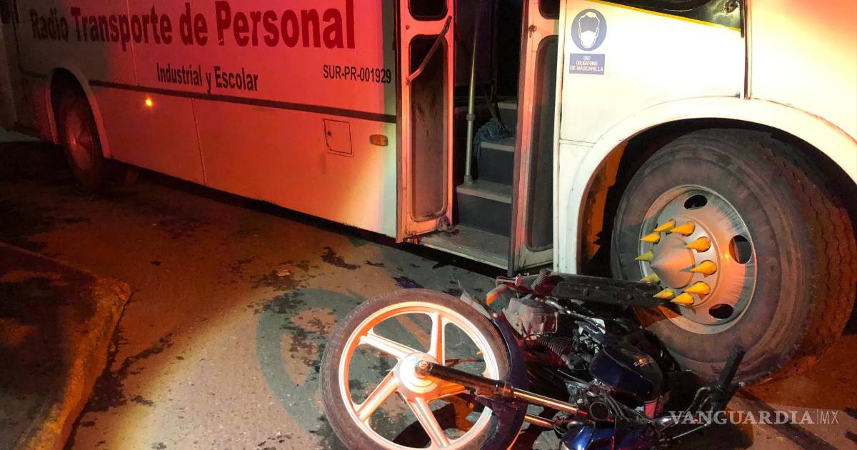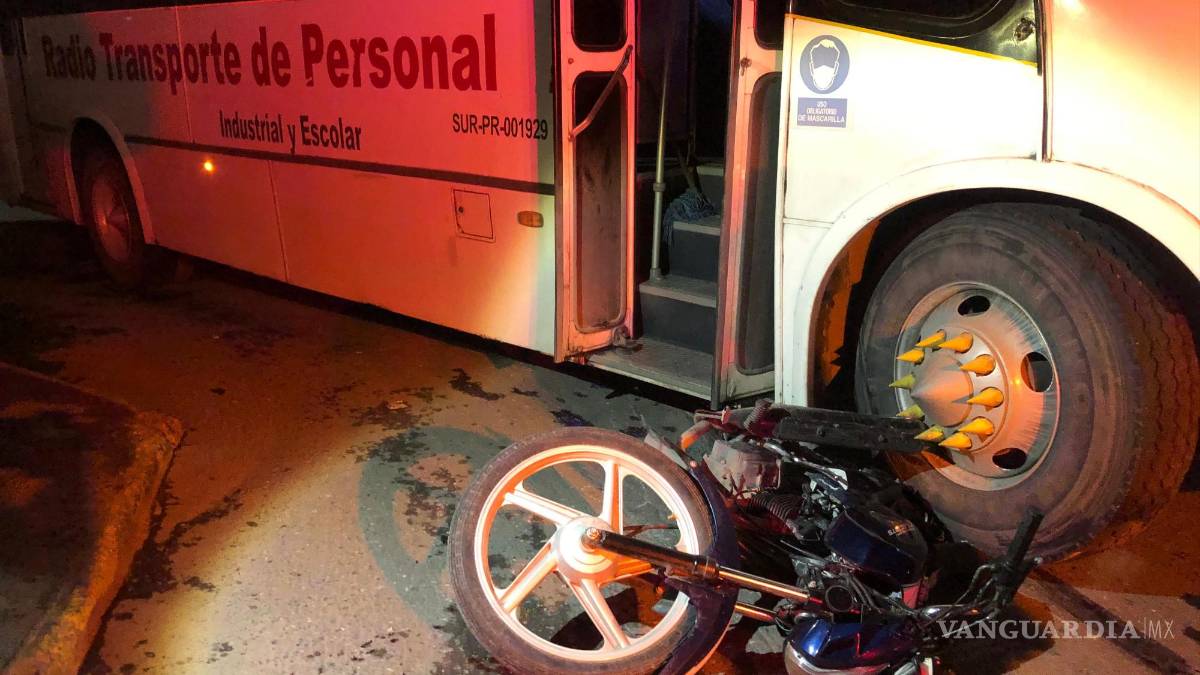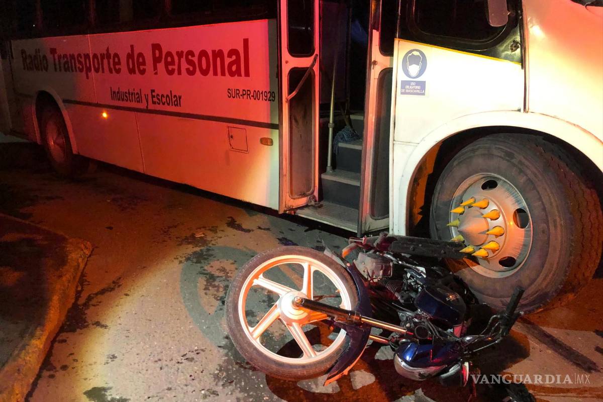 Con una fractura expuesta en su pierna izquierda resultó un joven motociclista de 19 años, quien fue arrollado por un transporte de personal cuando ambos circulaban en la misma dirección, al sur de Saltillo.