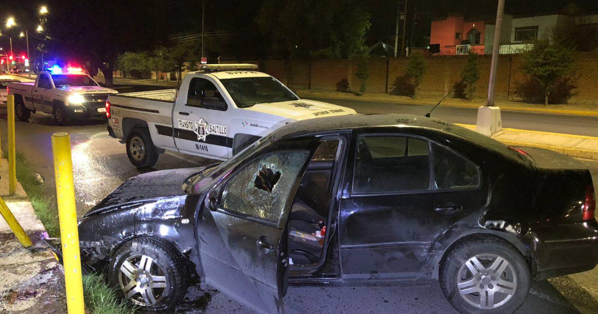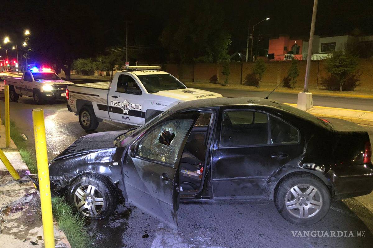 El conductor de un vehículo Volkswagen resultó con su unidad en pérdida total después de que volcara tras usar el inicio de un camellón central como rampa, al norte de Saltillo.