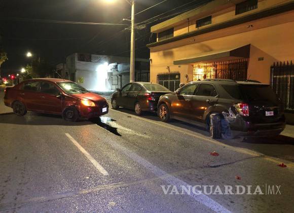 Un enojado hombre, y además presuntamente bajo los efectos del alcohol, protagonizó un aparatoso accidente en el que dos vehículos estacionados en céntricas calles de Saltillo, resultaron dañados. El incidente ocurrió pasada la medianoche, cuando el conductor de un Chevrolet Aveo con placas de circulación de Nuevo León circulaba a gran velocidad por el bulevar Francisco Coss de poniente a oriente.
