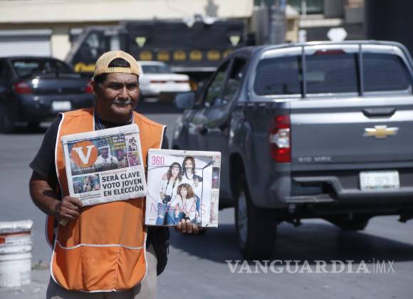 Todas las mañanas, en los cruceros más transitados de Saltillo, hombres y mujeres se dan a la tarea de vender el periódico del día metidos entre vehículos, vestidos con traje de una sola pieza cuyo color devela el periódico que promocionan.
