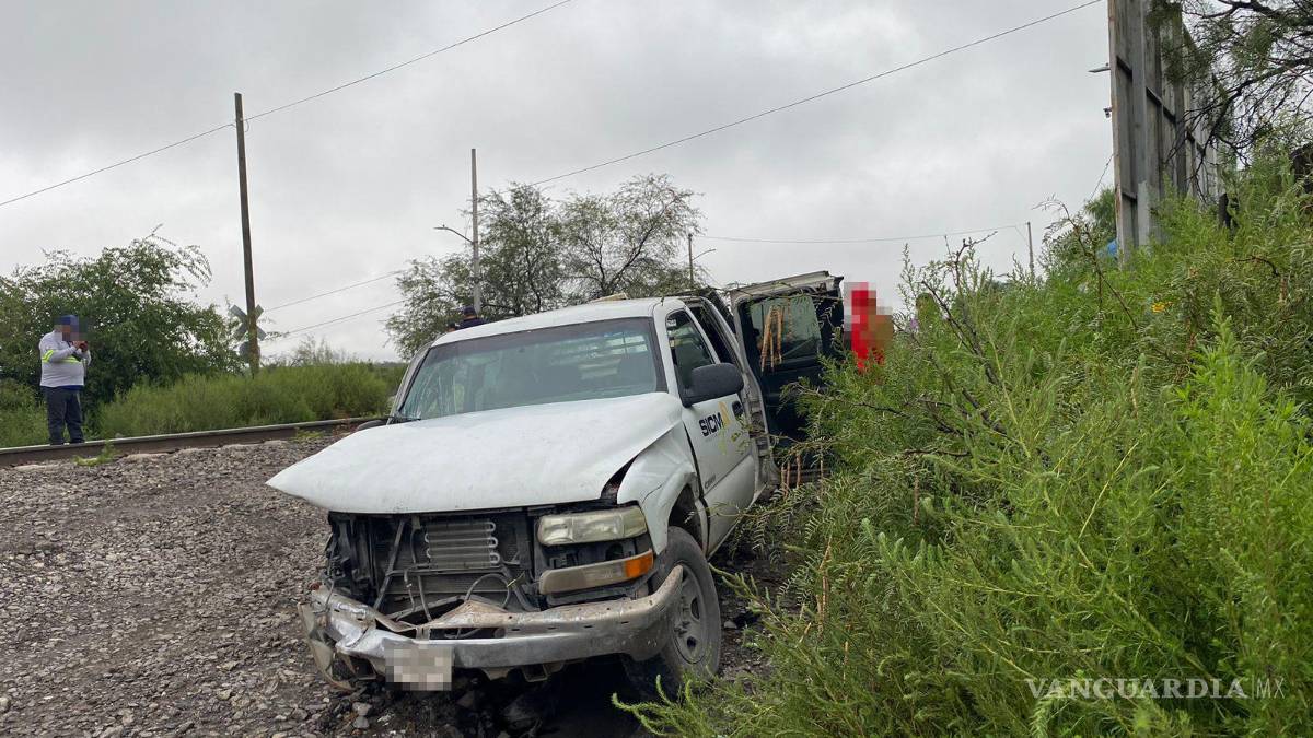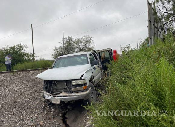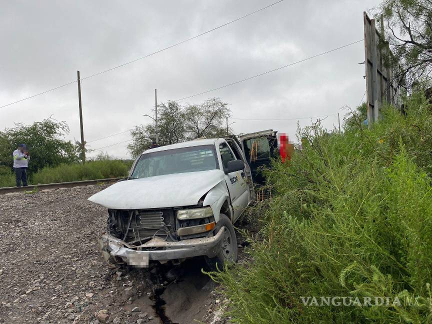 Saltillo: derrapa camioneta y es arrastrada por el tren; trabajadores resultan ilesos